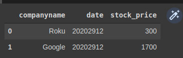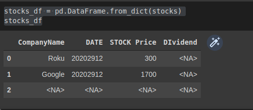 stocks = {"CompanyName":["Roku","Google",pd.NA],