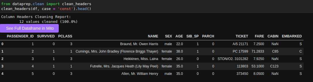 Như ở hình trên chúng ta có thể thấy một báo cáo hoàn chỉnh và chúng ta có thể tương tác trực tiếp trên báo cáo này luôn. Phân tích dữ liệu game là dễ =))) mình đùa thôi nhưng package này đúng là support tận răng luôn á. Tiếp theo chúng ta sẽ thử xem tính răng clean_headers của package dataprep này nhé: