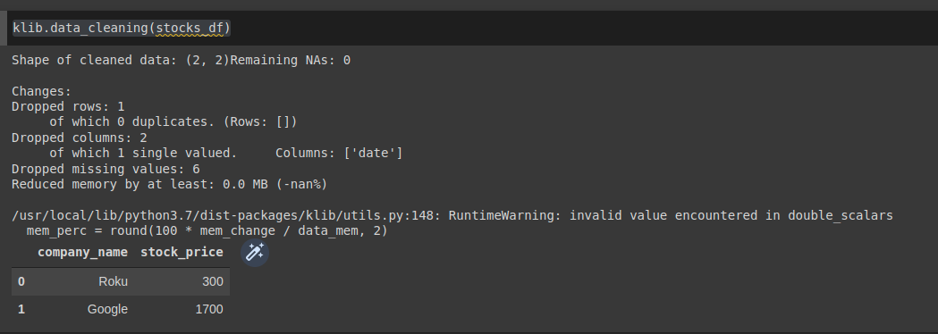 Với Klib chúng ta có thể làm sạch dữ liệu một cách nhanh chóng và rất dễ áp dụng với giá trị mặc định hợp lý có thể được sử dụng trên hầu hết DataFrame, bên cạnh đó còn có thể lấy được thông tin chi tiết của dữ liệu và trực quan hóa dữ liệu.