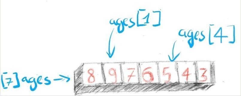 Ví dụ ta khởi tạo một mảng ages có 7 phần tử: