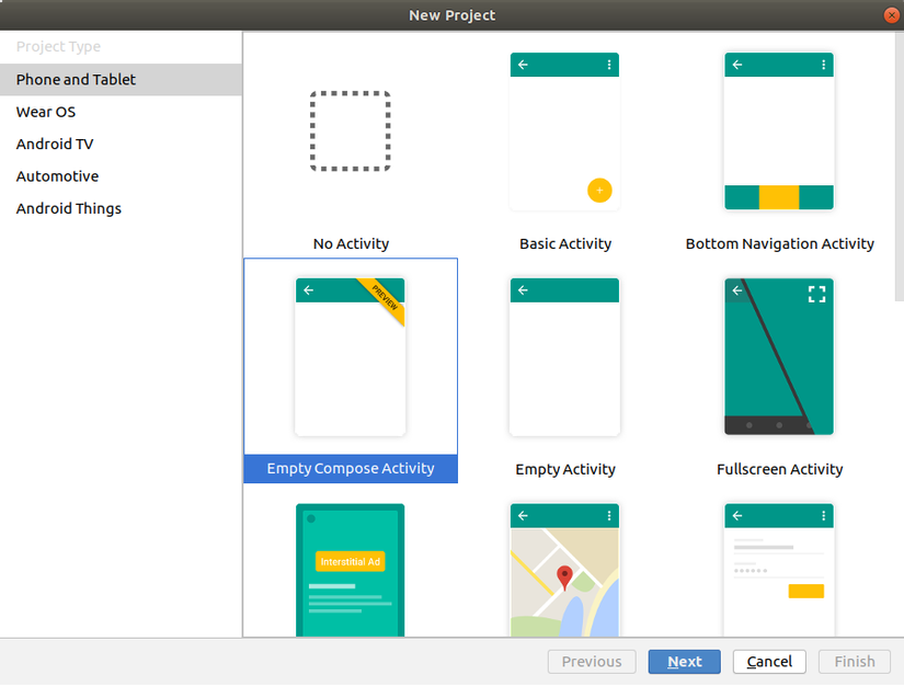 và thêm Jetpack Compose phụ thuộc vào bộ công cụ trong build.gradle :