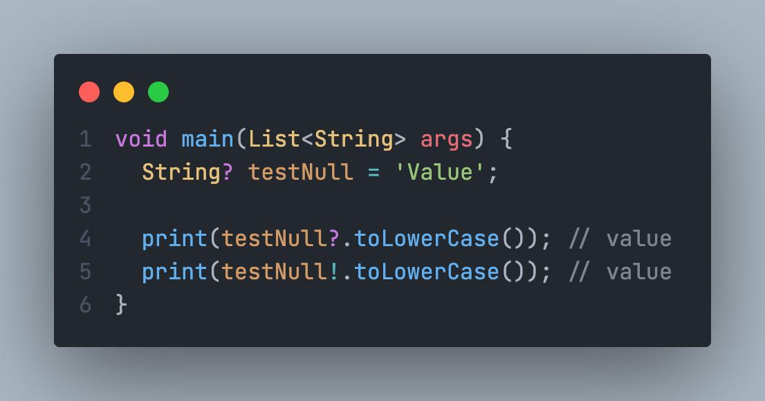 Kể từ phiên bản Dart 2.12 và Flutter 2.0 trở đi các biến Non-Nullable như String, int, ... sẽ mặc định là không thể null để tránh trường hợp các lỗi xảy ra ở runtime, khi bạn sử dụng Null Safety bạn có thể cho phép các biến ở trên trở thành biến Nullable types. Sau đây mình sẽ giới thiệu cho các bạn cơ bản các Null-aware Operators.