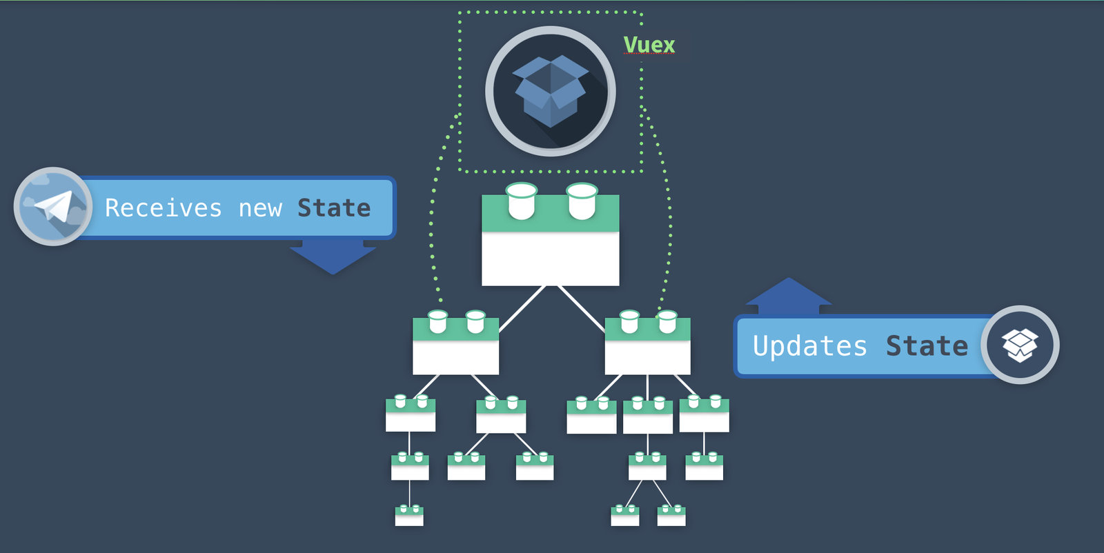 - Cũng giống như data của một instance Vue, State là "reactive". Khi một component cập nhật State, các component khác mà đang sử dụng dữ liệu này, sẽ nhận được thông báo, tự động nhận gía trị mới.