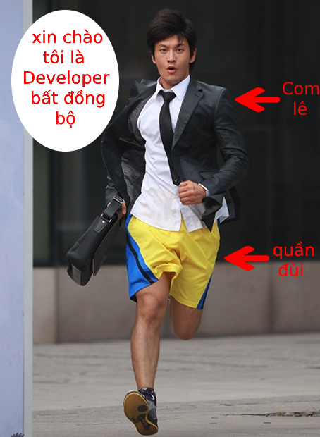 Bất đồng bộ = mặc quần áo không cùng bộ với nhau (?)