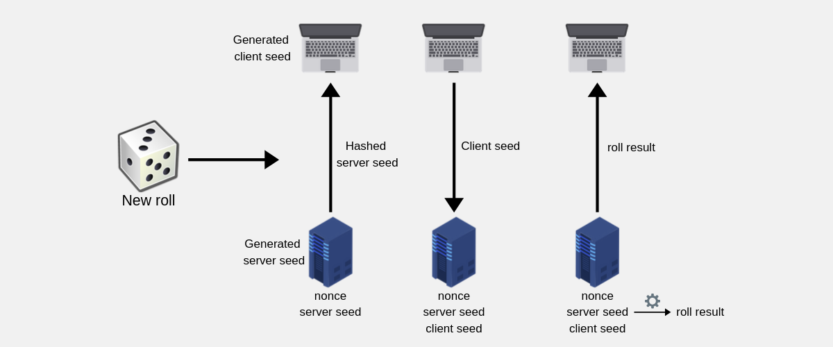 Người chơi sẽ nhận được encrypted hash của serverseed trước khi người chơi bắt đầu gambling và vì thế trang web sẽ ko thể thay đổi nó .Tuy nhiên nó đã được mã hóa bản thân người chơi cũng không thể tính trước được kết quả roll của mình .