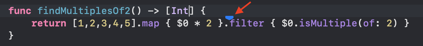 return [1,2,3,4,5].map { $0 * 2 }.filter { $0.isMultiple(of: 2) }