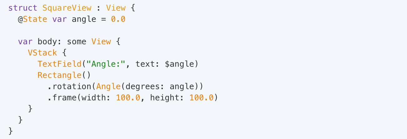 TextField("Angle", value: $angle, formatter: NumberFormatter.decimalFormatter)
