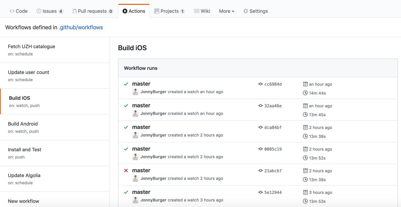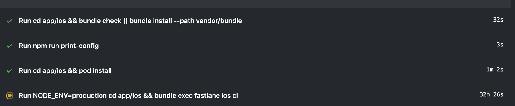 Workflows được chia thành các bậc: Workflow -> Jobs -> Steps. Mỗi step cho phép bạn định nghĩa một command (ví dụ:- run: pod install) hoặc sử dụng một Action đã được người khác chuẩn bị trước và chạy trong một Docker container. Tôi đã thử với các actions cho yarn, fastlane và bundle, nhưng theo cá nhân tôi, tôi sẽ tự gõ và sử dụng các bash command.