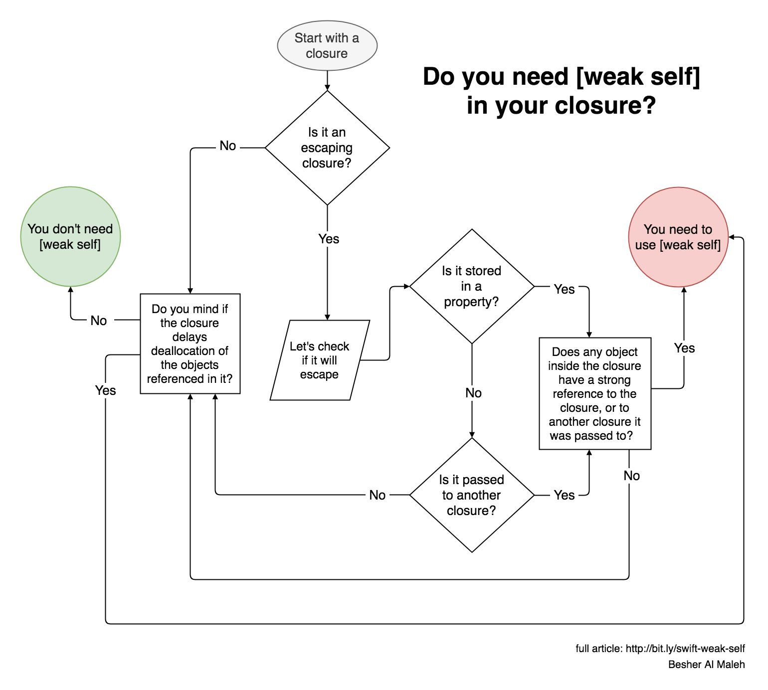 Biểu đồ dưới đây sẽ giúp bạn thấy được khi nào thì cần dùng [weak self]