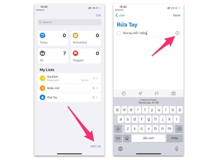 - Nhắc nhở mình hôm đó cần phải là gì (đã tạo Reminders trước đó)