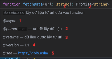 2. Sử dụng một số JSDoc tags để thêm thông tin comment