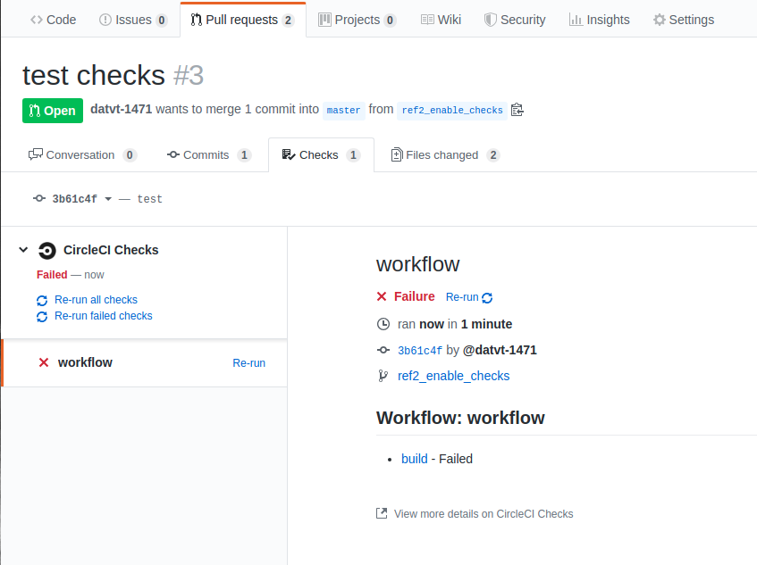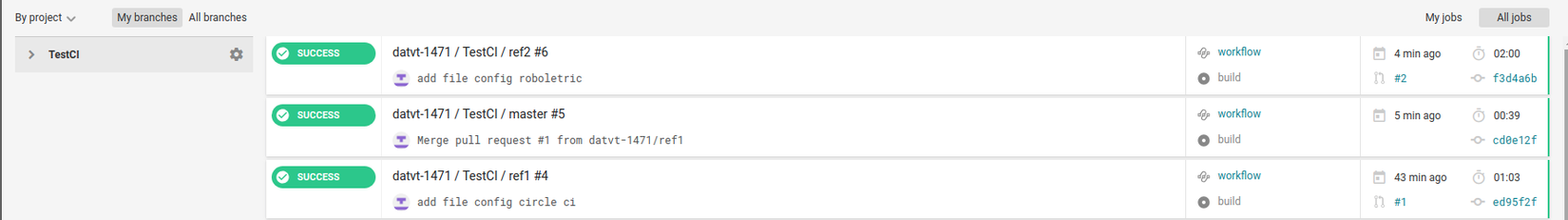 Nếu như bình thường mình sẽ tạo file Configurations để kiểm tra build test tại local. Tuy nhiên bài này mình sẽ đẩy code lên github nhắm mục đích để circle ci build test giúp. Và đây là kết quả mình thu về:
