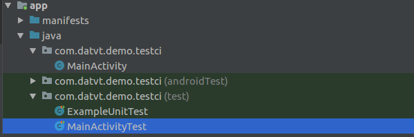 MÌnh sẽ tạo ra file MainActivityTest để test class MainActivity