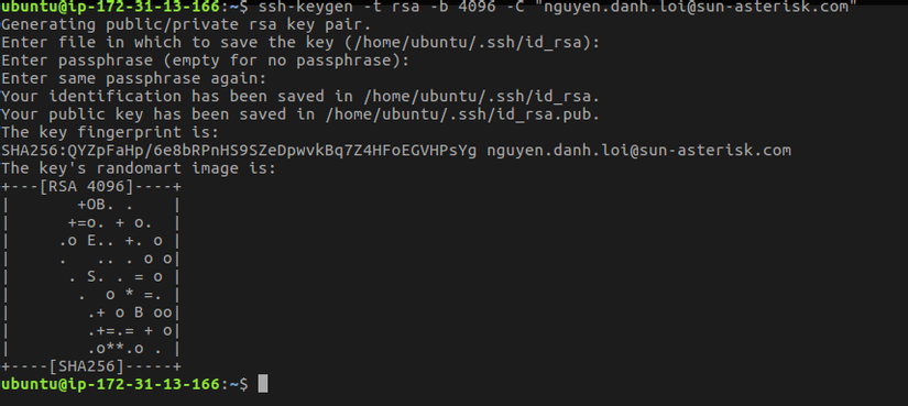 - Sau khi tạo xong ssh key nó sẽ như này.