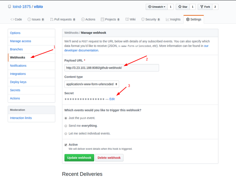 - Bước tiếp theo chúng ta sẽ tạo webhook trên github: