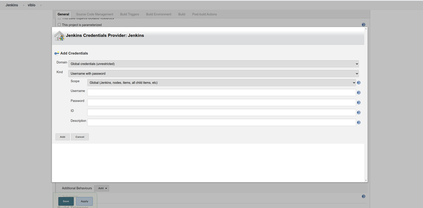 - Phần credential chúng ta add tài khoản github của chúng ta: