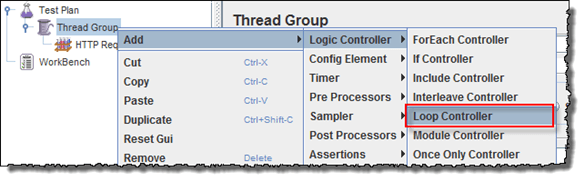 Nhấp chuột phải vào Thread Group -> Logic Controller -> Loop Controller