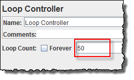 Thêm giá trị 50 vào trường Loop Count như hình dưới đây. Một user request gửi đến máy chủ web google.com sẽ chạy 50 lần. Nếu loop value = 2, JMeter sẽ gửi tổng cộng 2 * 50 = 100 HTTP Requests.