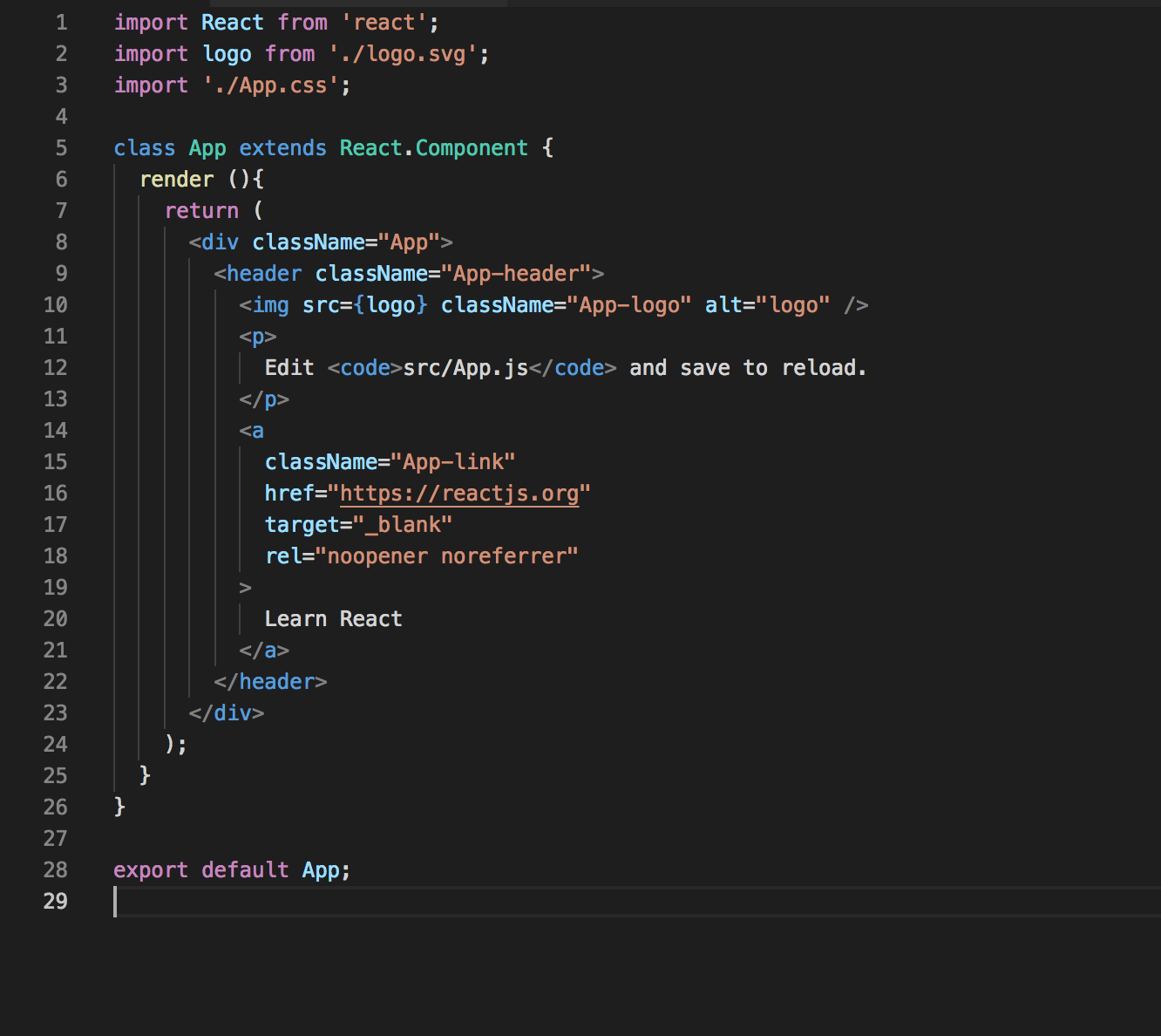 Những gì chúng ta sắp làm tiếp theo là hoàn toàn tùy chọn, nhưng điều ta muốn là chuyển đổi App function này thành một class App. Vì vậy, ta làm như sau: