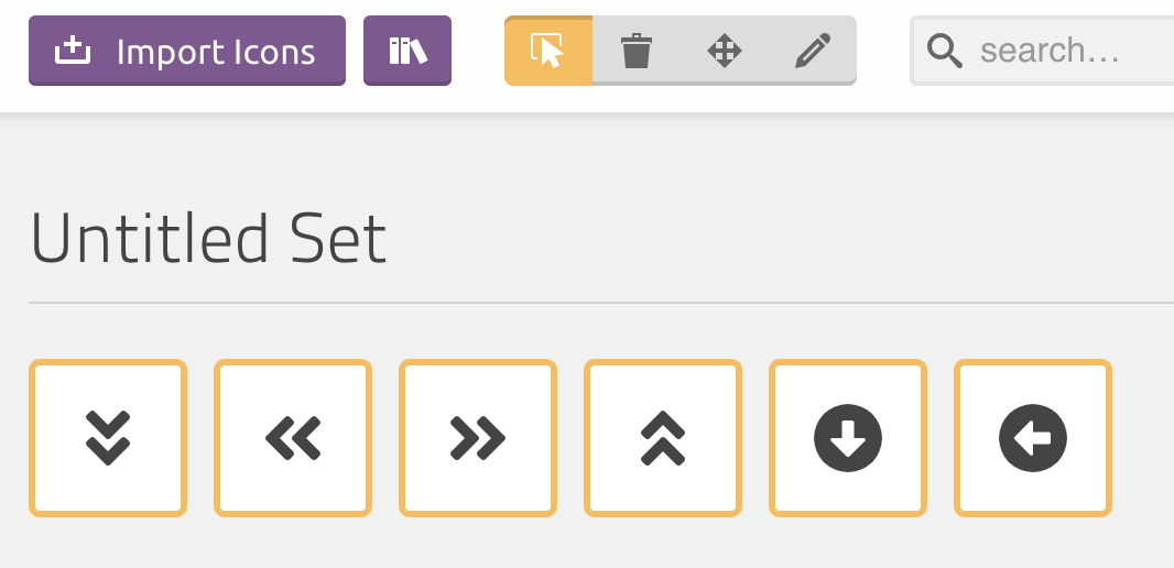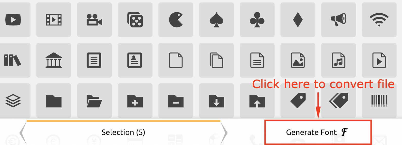 - B3: Select các icon mà bạn muốn convert sang icon font. Click vào các icon đó. Sau khi select, các icon được chọn sẽ có border vàng như ảnh dưới đây.