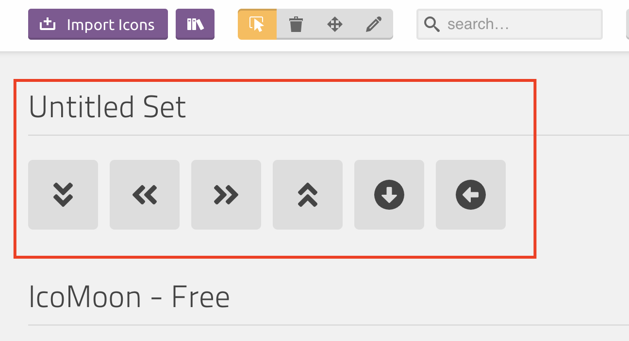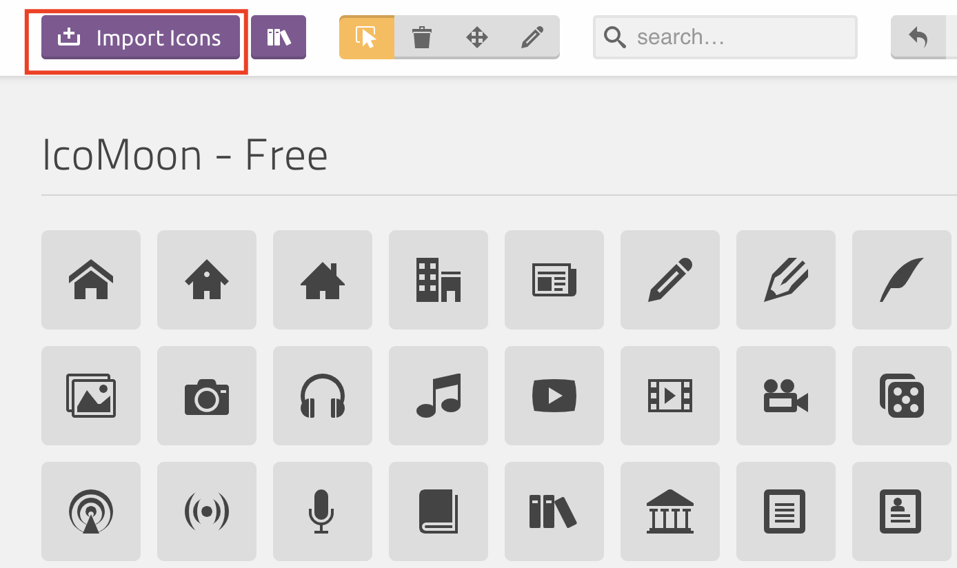 - B1: Click vào button Import Icons. Đây chính là phần up các file svg lên.