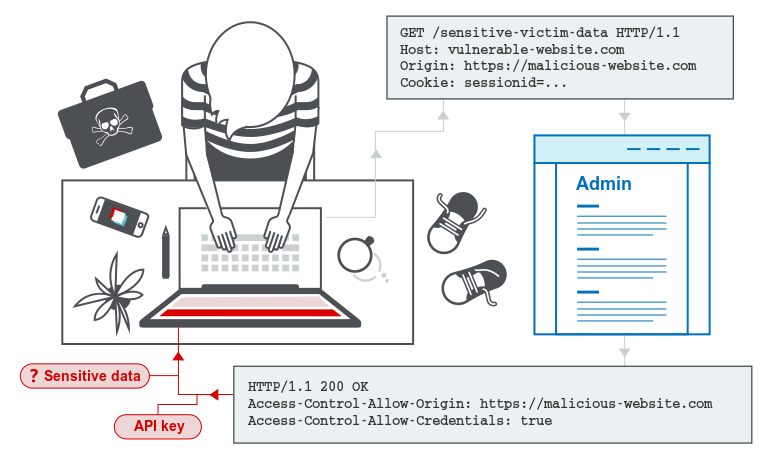 Như ở ví dụ trên, dù có là domain nào gửi tới cũng sẽ nhận được response accept từ server. Hacker có thể lợi dụng điều này để tạo 1 đoạn script để lấy được thông tin của bất cứ người dùng nào của trang trên khi truy cập vào web của hắn: