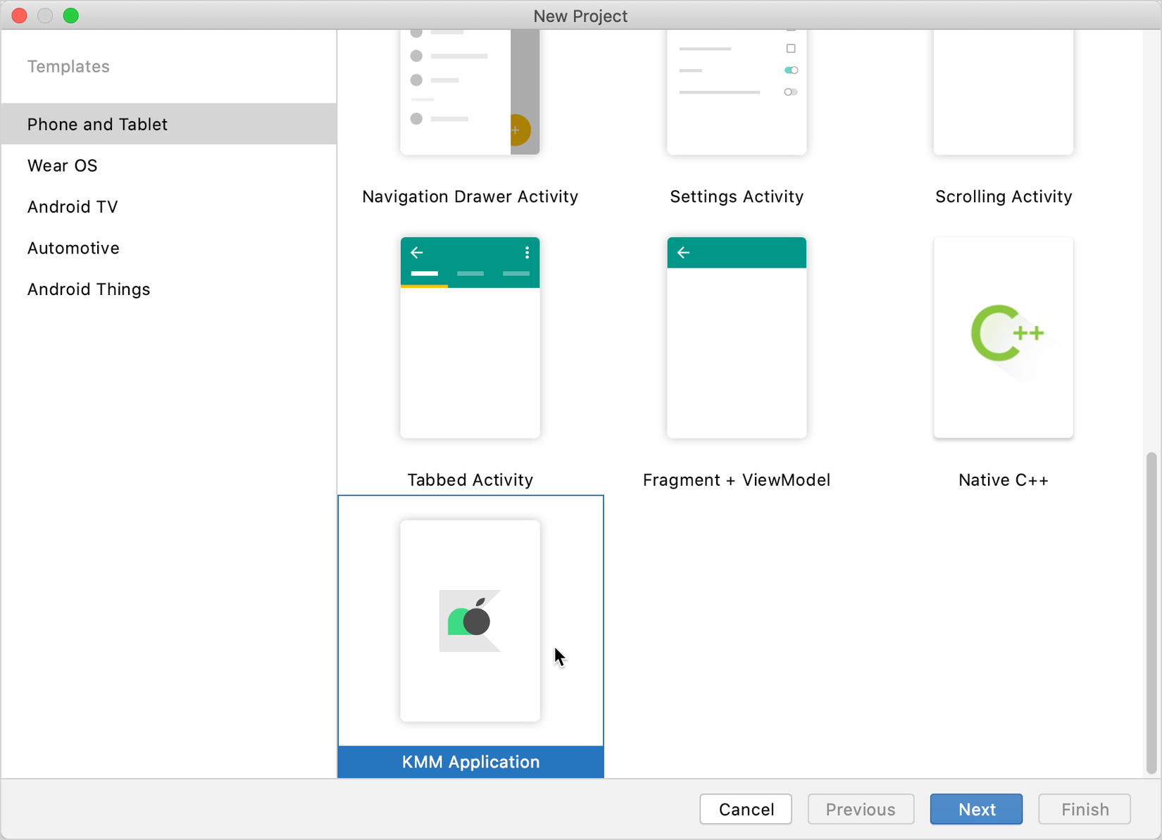 3.Chọn KMM trong danh sách các mẫu dự án và nhấp vào Next.