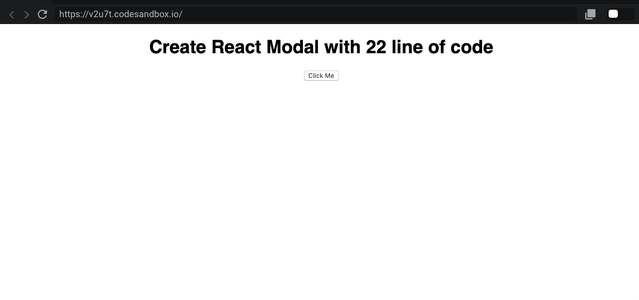 Codesandbox :https://codesandbox.io/s/create-react-modal-with-22-lines-of-code-v2u7t