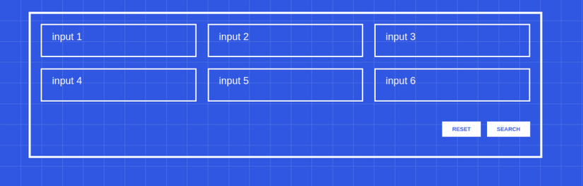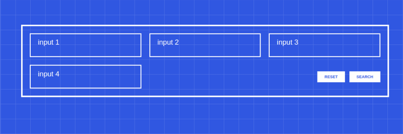 Trong phần này, chúng tôi sẽ triển khai search-filters wrapper giống như những cái chúng ta tìm thấy ở trên bộ sưu tập các sản phẩm hoặc không có gì cả. search-filters wrapper sẽ giữ một số inputs và hai nút action: Reset và search. Các nút hành động này phải luôn luôn ở góc dưới cùng bên phải của layout, như trong Hình 1 :
