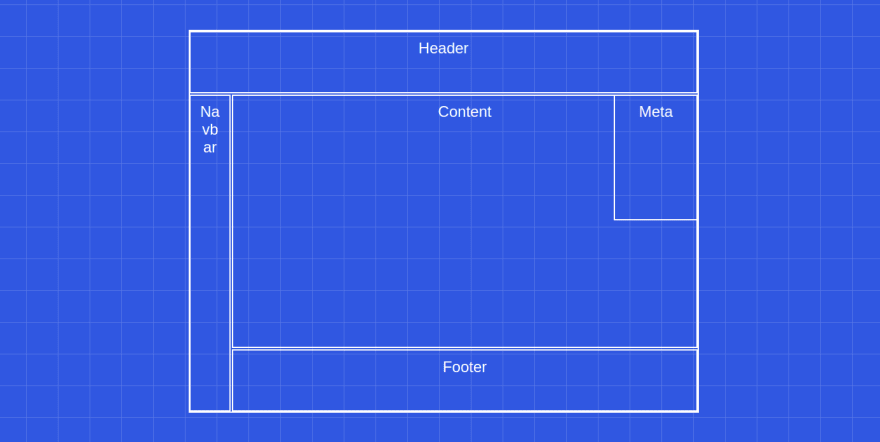 Bây giờ tôi muốn thanh navbarcủa chúng ta (ở bên phải) rộng hơn một chút. Hiện tại, nó trải dài trên một column-lines, chúng tôi muốn nó trải dài qua hai column-lines. Để làm điều này, chúng ta phải thay đổi vị trí .navbar nhưng nếu làm thế ta cũng phải thay đổi vị trí .content và .footer, bởi vì hiện tại .navbar đi từ cột 1 đến 2 và .footer& .content đi từ cột 2 đến cuối cùng.