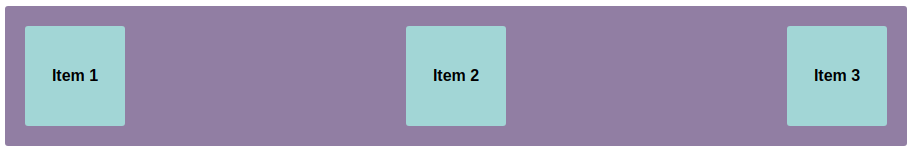 space-between: các flex item sẽ được căn tương đối với nhau, phần tử đầu tiền bắt đầu ởmain-start, phần tử cuối cùng ởmain-end