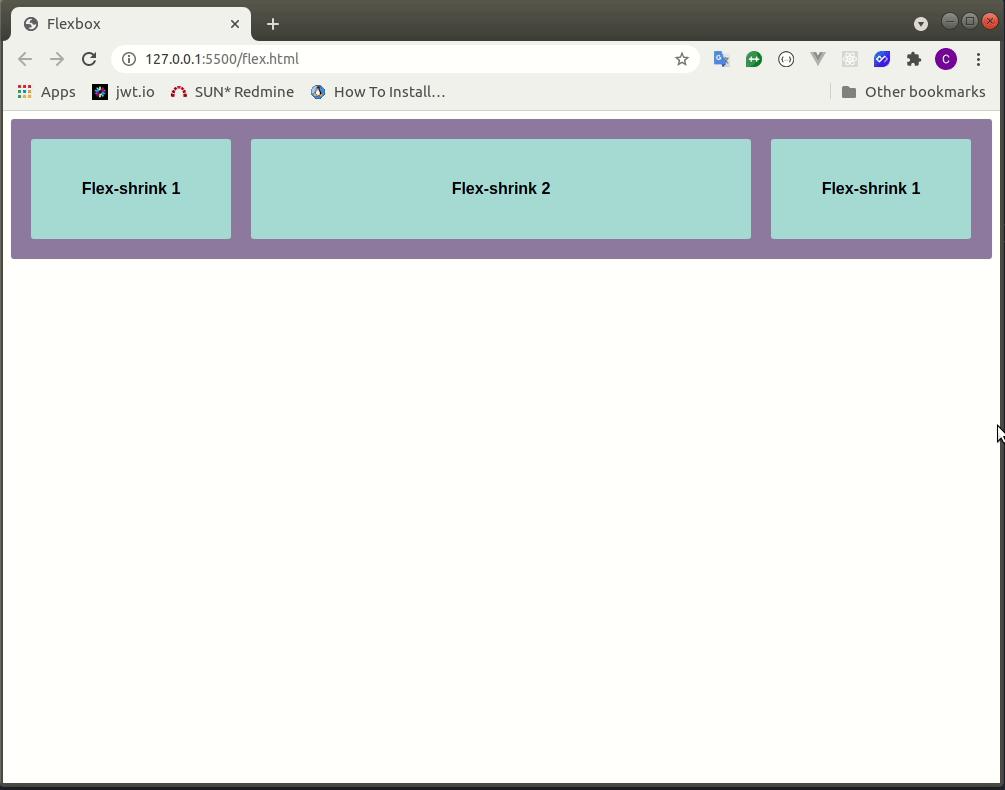Khi ta thu nhỏ trình duyệt các phần tử sẽ đồng thời co lại nếu ta muốn một phần từ co lại nhiều hơn thì sao? Lúc này ta sẽ dùng đến flex-shrink mặc định giá trị này sẽ là 1 (các phần tử sẽ bớt chiều rộng của mình như nhau). Nếu ta để giá trị này lớn hơn các phần tử flex còn lại thì flex item này sẽ bị co lại nhiều hơn (mất chiều rộng nhiều hơn các phần tử khác) theo một công thức.