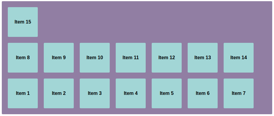 wrap-reverse: tương tự nhưwrapnhưng chúng được hiển thị từ dưới lên trên.