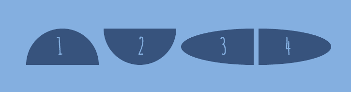 Để thiết hình nửa bầu dục, chúng ta cần dùng đến ký tự slash (/) để định nghĩa các bán kính dọc và ngang. Nếu như ta set giá trị 50% trước kí tự (/) chúng ta sẽ thu được một nửa hình bầu dục dọc hay hình bầu dục ngang trong ngược hợp ngược lại.
