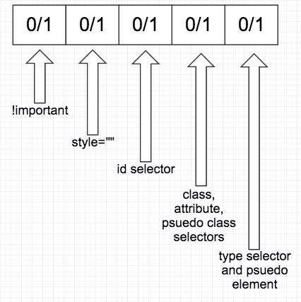 Đối với biểu thức trên thì mỗi selector sẽ có giá trị là 5 chữ số và giá trị selector nào có giá trị lớn hơn sẽ ghi đè giá trị nhỏ hơn. Các giá trị được tính từ trên xuống dưới.