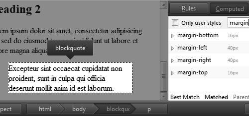 như ở hình trên thì Firefox mới nhất hiển thị thẻ blockquote theo mặc định với lề: 16px 40px 16px 40px, Internet Explorer 7 sẽ hiển thị thẻ blockquote với lề: 0px 40px.