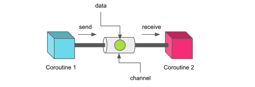 . Cái ống đó chính là channel là nơi để con coroutine 1 send data vào ống, và cũng là nơi để con coroutine 2 chui vào ống xúc data ra xử lý