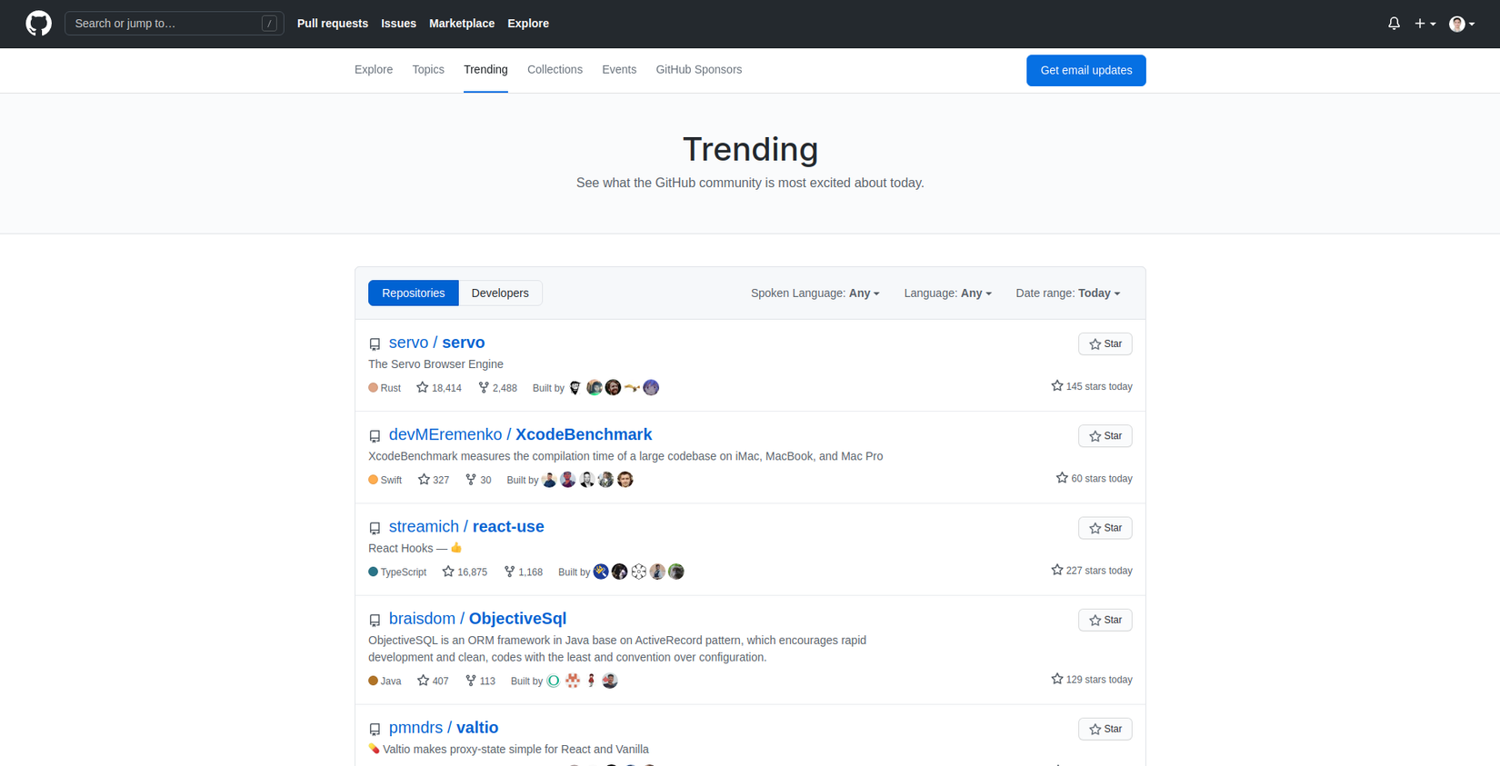 Dựa vào GitHub Trending, chúng ta dễ dàng thấy được những repo được quan tâm bởi đông đảo người dùng GitHub trong thời gian vừa qua. Phần sau đây liệt kê một số dự án mà mình cảm thấy thú vi được liệt kê trong thời điểm hiện tại. Để có thể tìm hiểu thêm các repo khác cũng như cập nhật danh sách trending hiện tại, mọi người có thể xem tại https://github.com/trending