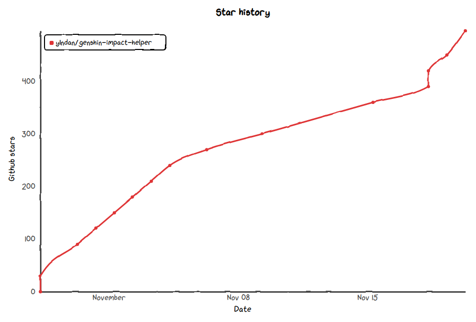 Do chỉ mới được khởi tạo dự án vào đầu tháng 11 cũng như chỉ phục vụ mục đích đăng nhập tự động Genshin Impact nên repo này có lượng stars khá khiêm tốn khi chỉ có 494 stars cho đến thời điểm hiện tại. Tuy nhiên có thể do cần fork để sử dụng chung với GitHub Workflows nên số lượt fork của repo này rất cao, xấp xỉ 1,900 lượt, nhiều hơn cả react-use. Có thể do lý do này mà genshin-impact-helper được liệt kê trong danh sách Trending