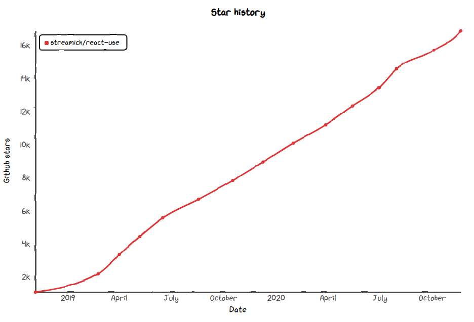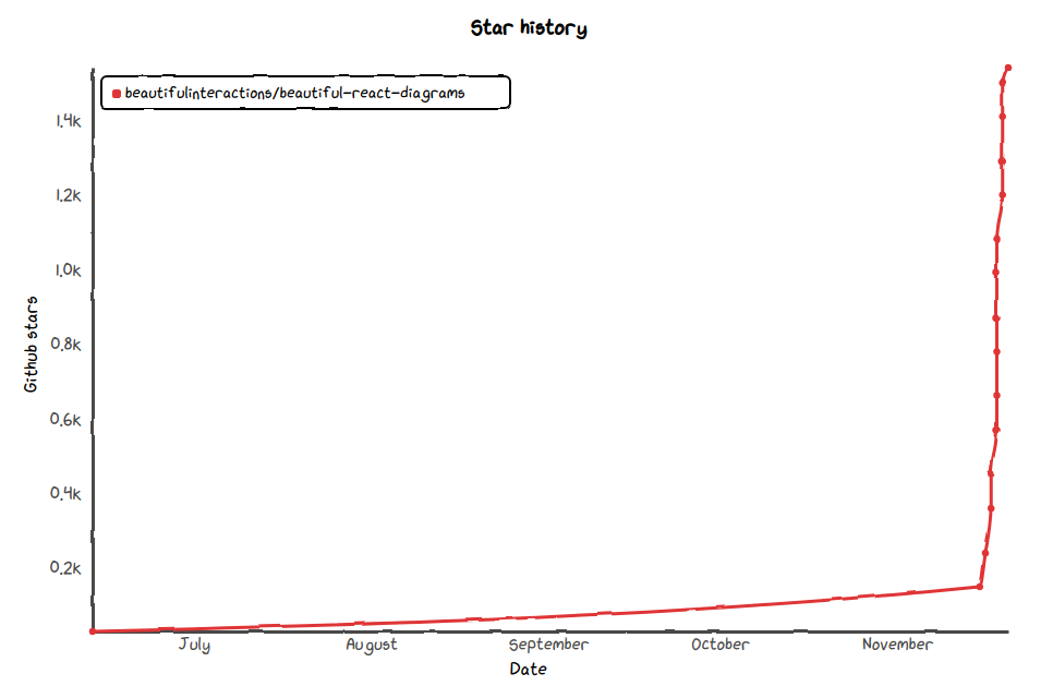 Chỉ mới được khởi tạo từ tháng 7 năm này, lượng stars của dự án này tăng đột biến trong tháng 11 này, có thể do tính năng của thư viện vào thời điểm đó đã hoàn thiện và thu hút được sự chú ý của đông đảo cộng đồng. Mặc dù vẫn còn khá ít tính năng, tuy nhiên việc tăng mạnh số stars từ 200 lên xấp xỉ 1,400 trong chưa đầy 1 tháng cho chúng ta thấy rằng đây là thư viện vô cùng tiềm năng và có thể phát triển mạnh hơn nữa trong thời gian tới.