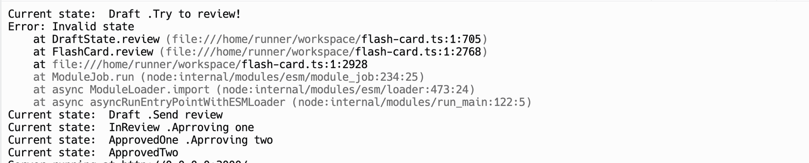constructorcủa các hàm mình sẽ cho kiểm tra trạng thái Flash card ngay khi class được tạo để tách biệt logic với các hàm bên dưới - Các class của state Draft, InReview và ApprovedOne sẽ tương tự logic với khi chúng ta dùng cơ bản, chỉ cần copy vào là xong