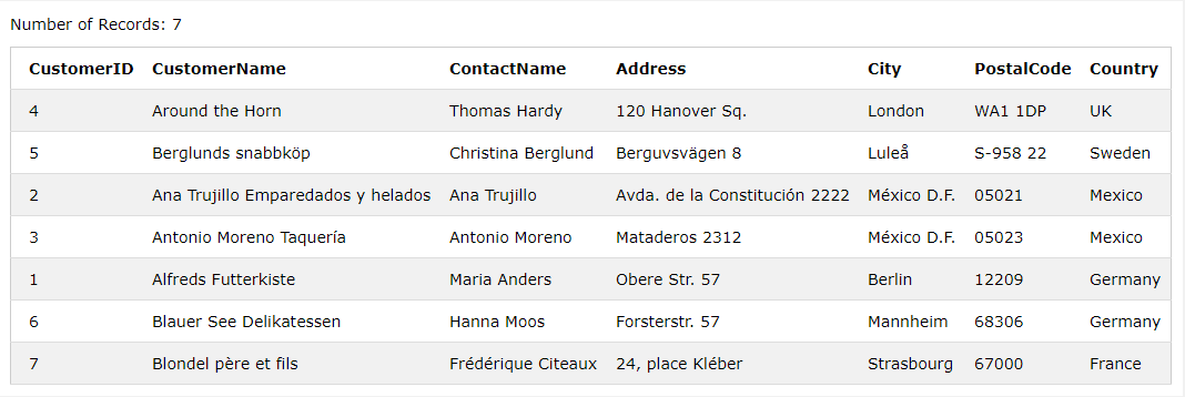 Ví dụ 1: Bảng dữ liệu "Customers" như sau: