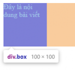 Đấy cái box của mình lại cứ 100x100 px mà không phải tính toán cho mệt thân. Lúc này cái box-sizing sẽ hiểu và tính toán kích thước box của mình bằng với border + padding + kích thước content của mình. Nhưng padding không được quá kích thước khai báo cho element nhá, nếu quá thì không có tác dụng đâu