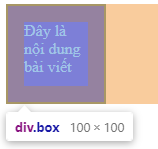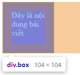 Cái box của mình lại tăng tổng kích thước lên 104x104 px. Quá bực phải không, không lẽ lại tiếp tục trừ thêm? Không sao Box-sizing sẽ giải quyết vấn đề này