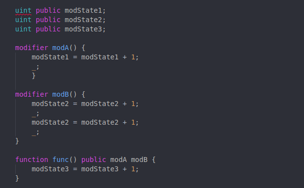 modState3 = 2 (vì nó được gọi 2 lần ở modifier modB())