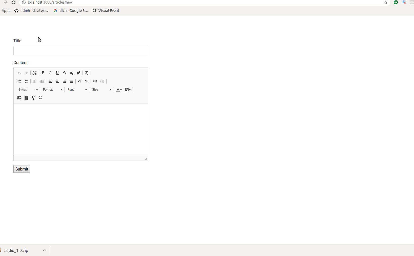 Bây giờ ta tạo một trang tạo bài báo như sau: