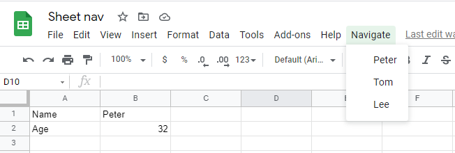 Mỗi khi tên sheet thay đổi, chỉ cần chạy lại hàm onOpen() thì custom menu "Navigate" cũng tự động thay đổi theo. Tuy nhiên, tên hàm thực thi việc chuyển đối sheet giống hệt tên sheet nên thỉnh thoảng sẽ phát sinh lỗi.