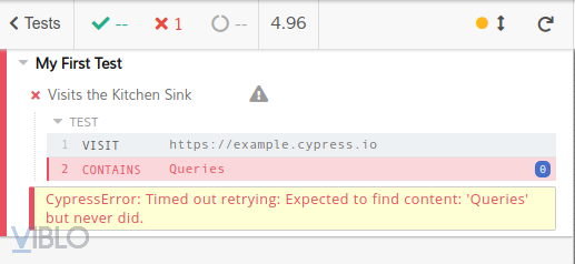Ở đây thì mình đang yêu cầu cypress kiểm tra việc truy cập qua link https://example.cypress.io