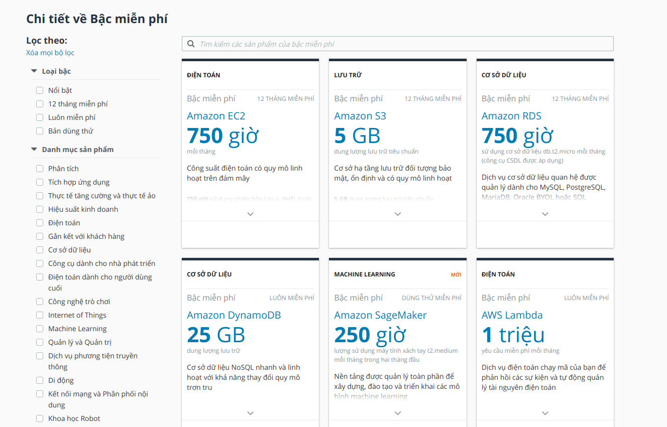 Có rất nhiều dịch vụ được AWS cung cấp, để tạo và sử dụng