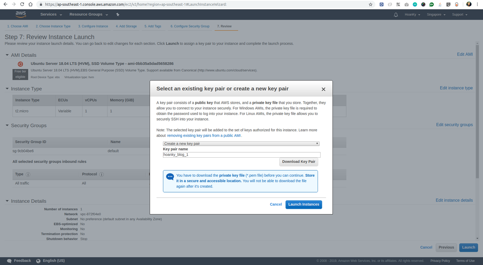 Key Pairrồi tải xuống, để sau này, chúng ta có thể dùng nó đểSSH vào server. Download Key Pairvề rồi giấu nó đi héng, để người khácbiết đượclà cũng mệt đấy.![]()